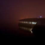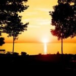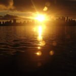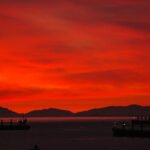 Still waters mirror the sky’s fiery colors, inviting a moment of peaceful reflection.