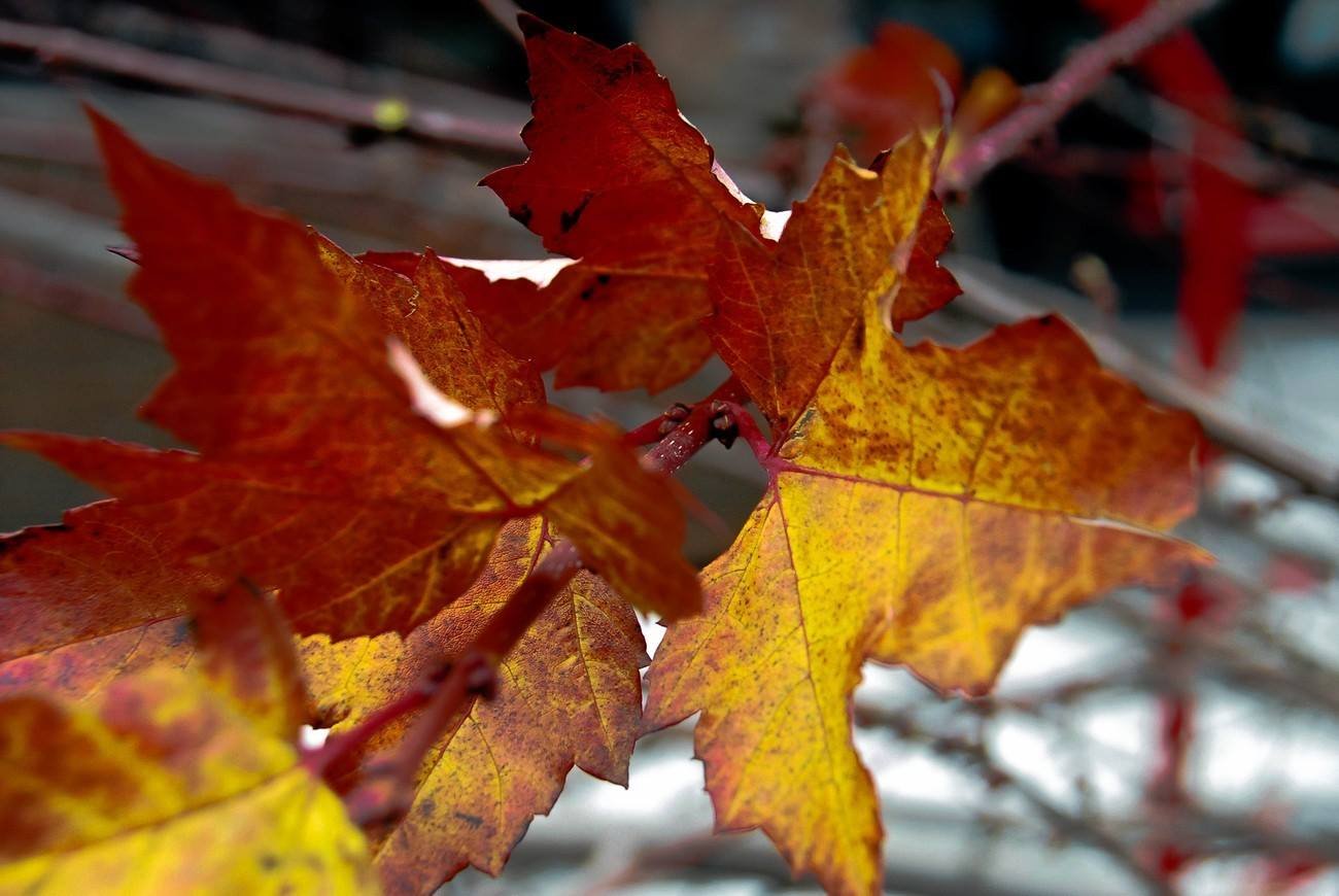 Rich reds and golds paint the forest floor, showcasing the fleeting beauty of fall.